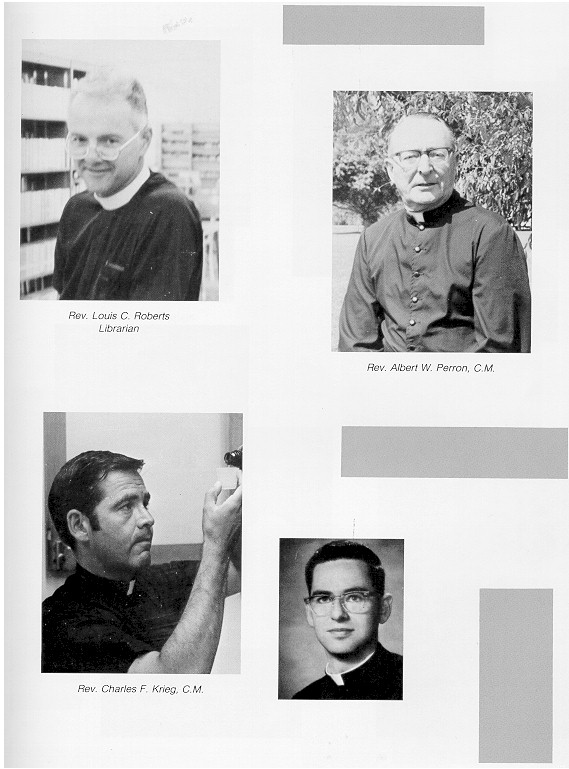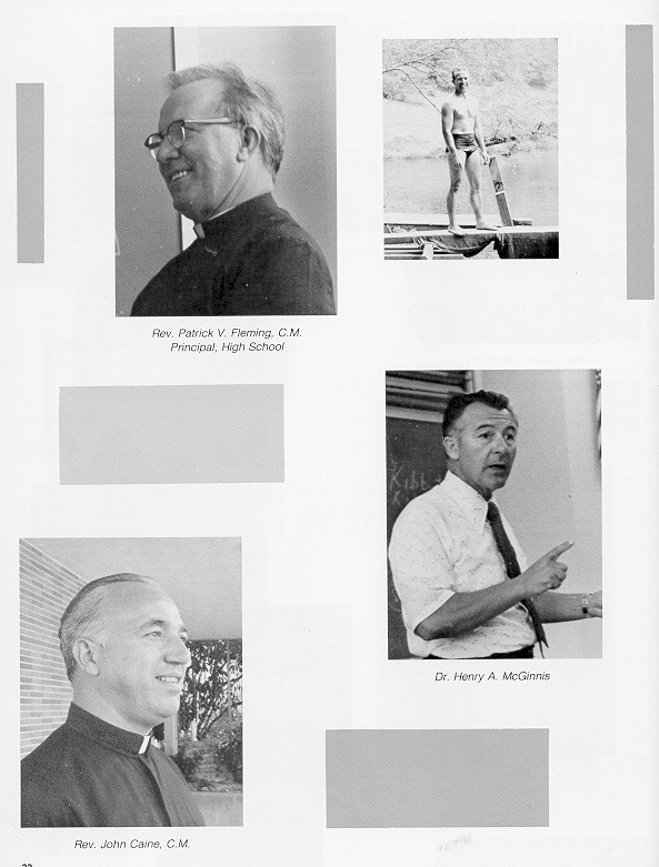The first faculty of SJV From left to right: Fathers John Young, Bernard Reilly, John Fisher, John Fisher, John McDonnell, Fredrick Gaulin, Paul Day, Albert Perron, Michael Farren, Henry Bradbury, Vincent Trunk, Michael Kennedy, Martin Peterson, John Buckley. The faculty members from the first year were Frs. Fr. Young, Day, and Bradbury All of the Vincentian Fathers have left us with memories of education, the old fashioned way. Please take a moment to reflect on the impact these men had on us.