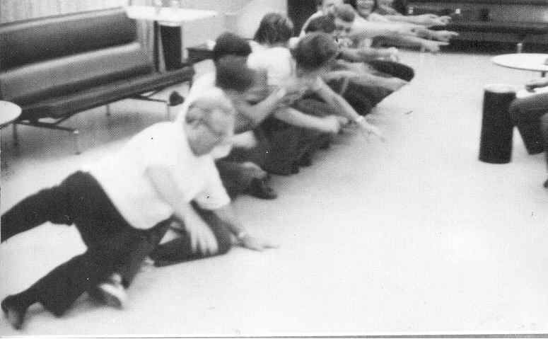 bear!" The next one, "Where?" We get to end of the line. The attention goes back to Father. There may have been more of a story here, but that's lost in my memory. He says again "I see a bear"… "Where?" This time, Fr. also raises his left arm and points in the distance. 'There!' The same thing goes down the line. Well, I guess everyone is still a bit blind, so Father tries to help us see the bear again, this time, he squats down, continuing to point with both arms in the distance. And so it goes down the line. So picture it, a line of freshman, in a squat, both arms up, pointing ahead. What's next in this story? Father leans to his left… over we all go, like dominos. Not sure if there was a moral here, maybe a simple example of peer pressure, or maybe it was a badly needed ice breaker to get us all laughing at ourselves for 'falling' for such a silly story. Fr. Fleming would go on to be one of our most memorable teachers. Another story that comes to mind. Every February, there's a large fair, the Dade County Youth Fair, a couple miles west of campus. A few of my fellow freshmen were invited to go with Fr. Fleming one afternoon. We all crammed into an old station wagon with Father at the wheel. Of course, we were supposed to be there to see the science fair exhibits, but of course in no time we were out on the midway checking out the rides. There was one in particular, the Super Himalaya, that was idle when we came by. The midway was fairly empty in the late afternoon, so the rides weren't running all the time, but when you got a ride, it was usually long. We came SO close to getting Fr. Fleming on the ride! 'It's just like a merry-go-round' we all assured him. He started to join us on the ride, but in retrospect, it was probably a good thing for (for us) that he didn't. It's a really fast and loud spinning ride that, scientifically, is a great demonstration of centrifugal force. Thinking back to my memories of him, although he wasn't close to our age, he always had a certain youthful attitude. He would jump around in class to make biology more interesting. He always had a story, a silly joke, or anything to make us learn with a smile on our faces. He'll be missed by every one of us who were lucky enough to be in his class. Ray J. Vaughan Even more wonderful Fr. Flemming memories at the St. Joe's Alumni Web Site January 22, 2007 From Dan Kroger: This message came to me from