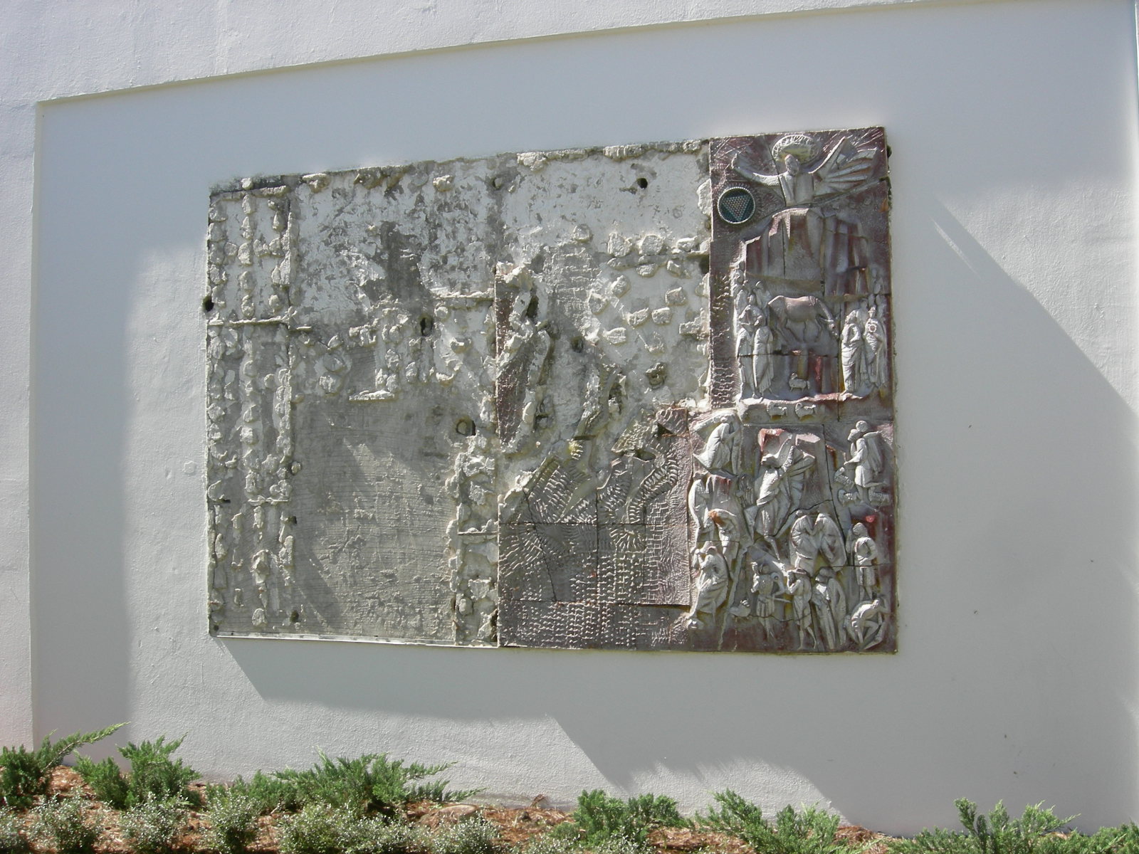 During one of the Miami hurricanes, a mural in the outside garden of the Chapel was damaged. It may be possible to rebuild, but we need photos of it. This is the 3 dimensional mural near the base of the bell tower, in the front garden, facing east. Please check your photo albums. Even if it appears it the background of your picture, it may help piece it together. Here's how it appears today: